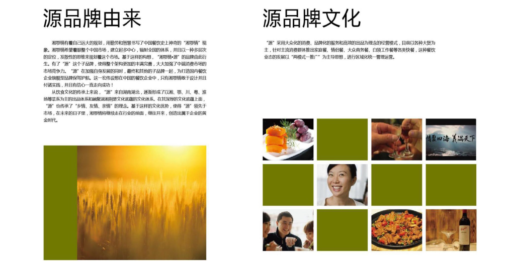 通過(guò)對(duì)湘鄂情.源的品牌研究,美御從整體的形象的策劃開(kāi)始著手,給“源”制定了最合理的品牌可持續(xù)發(fā)展計(jì)劃。塑造品牌形象,促成品牌認(rèn)知,最終實(shí)現(xiàn)“源”品牌的發(fā)展之路。我們采用黑白色調(diào)為主的經(jīng)典懷舊的組合風(fēng)格,同事結(jié)合簡(jiǎn)約時(shí)尚的元素,用清晰的綠色裝點(diǎn),力在體現(xiàn)健康、綠色、有機(jī)無(wú)害的飲食理念,整體給人以簡(jiǎn)潔、時(shí)尚、大方的感覺(jué)。