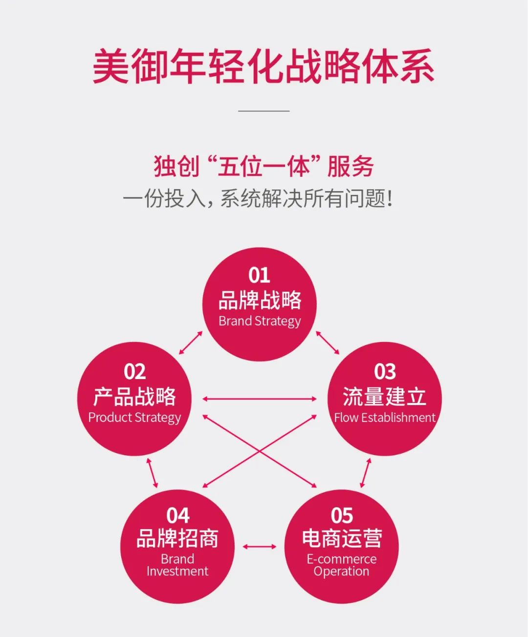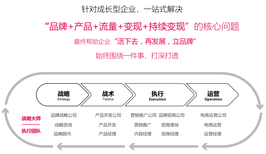 美御以結果為導向,以年輕化戰(zhàn)略和創(chuàng)新思維為手段,通過創(chuàng)新的戰(zhàn)略打法,從戰(zhàn)略到戰(zhàn)術、從執(zhí)行到運營,為成長型企業(yè)量身定制,通過貼身服務、深度綁定,一站式解決“品牌+產品+流量+變現(xiàn)+持續(xù)變現(xiàn)”的核心問題,幫助企業(yè)“活下去、再發(fā)展、立品牌”!