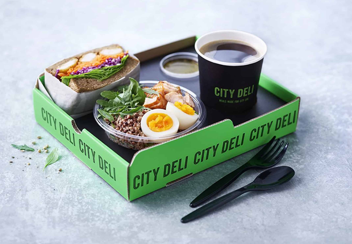 城市熟食店一店多用,既可以堂吃,也可以外帶,也可以外賣,能過(guò)實(shí)現(xiàn)更多的場(chǎng)景,對(duì)提高日銷售額有很大的幫助,店鋪品牌設(shè)計(jì)也是簡(jiǎn)潔大氣,突出品質(zhì)感。