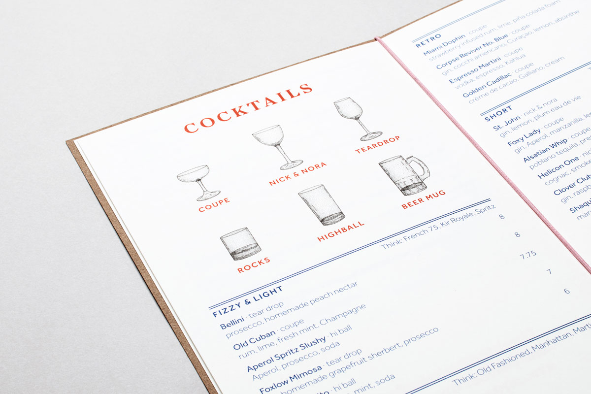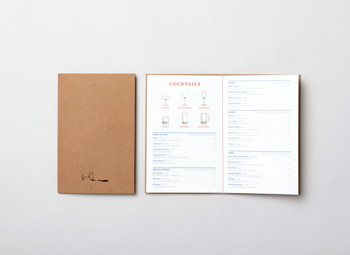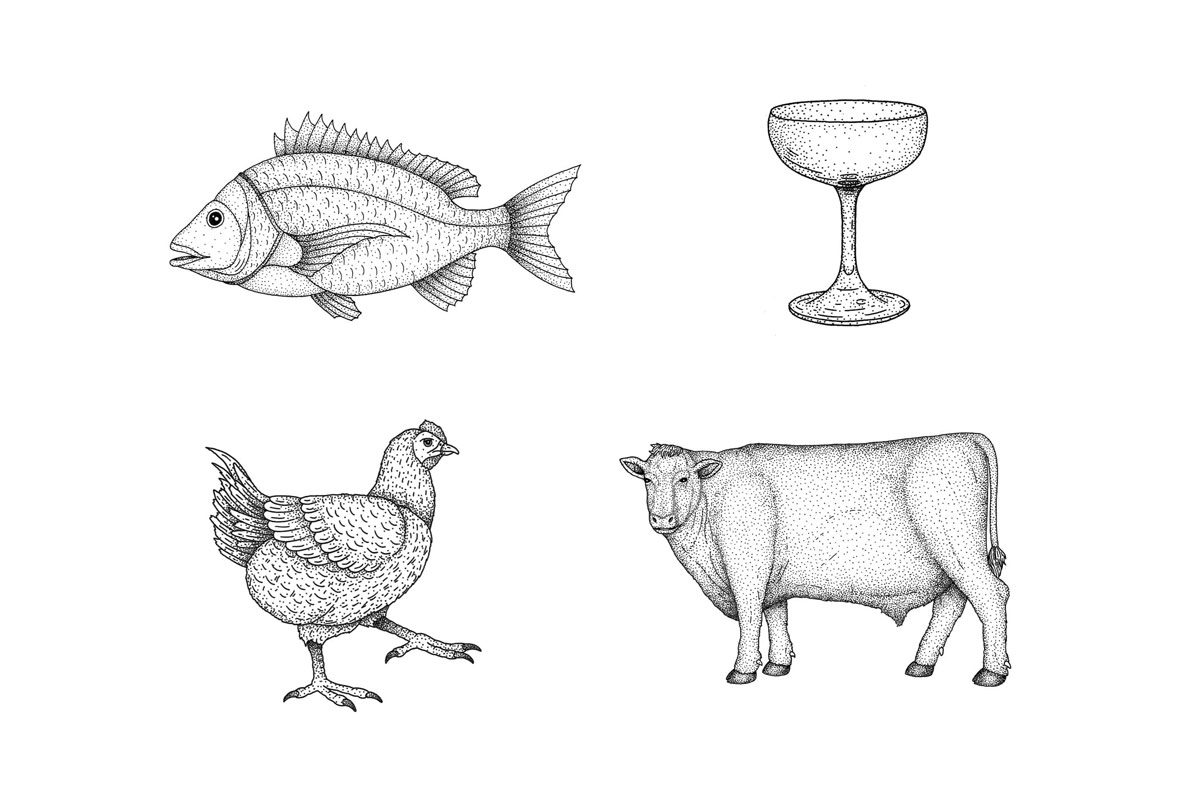 其中采用很多插畫,其風(fēng)格讓人聯(lián)想到維多利亞時(shí)代的版畫,但更具現(xiàn)代感。這些插圖中加入了幽默元素,這使餐廳能夠更多地談?wù)撈放莆幕囊幻妫粫?huì)感到太枯燥。